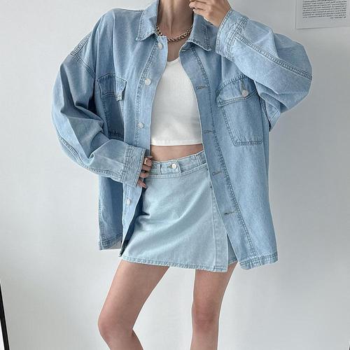 [옷자락]여자 랩 레이어드 치마바지 오버핏 포켓 청남방 세트