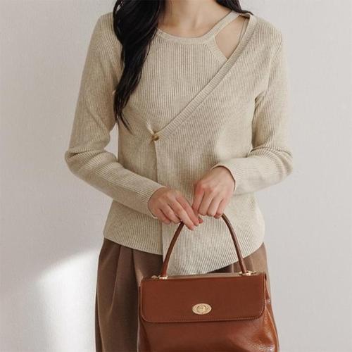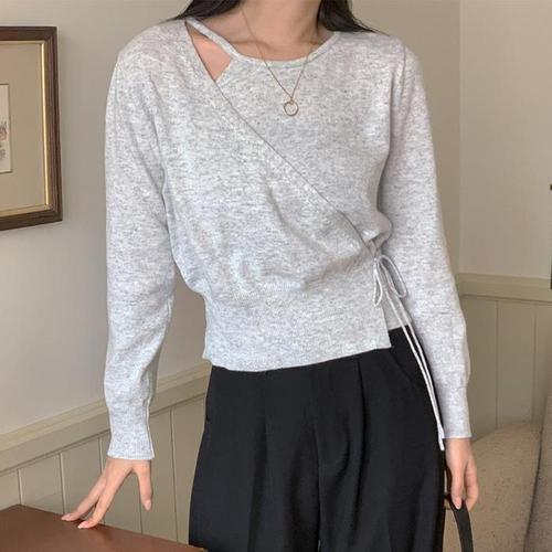 [신상오픈런]랩니트 컷아웃 슬리브리스 긴팔 원숄더 골지티셔츠 (29734769)