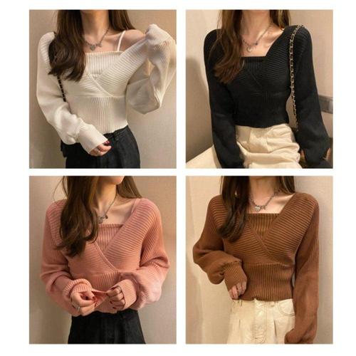 [엄지척]여성 니트티 브이넥 슬림 랩 니트 볼륨감 있는 니트탑_19659590_667501