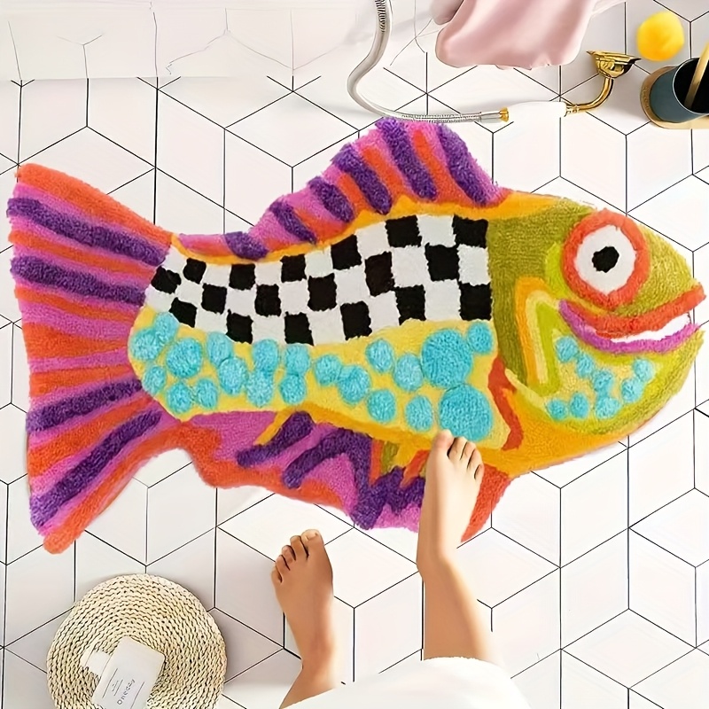 TEMU 1개 창의적인 컬러풀 못생긴 물고기 러그, 욕실용 불규칙 카펫, 인조 캐시미어 흡수력 좋은 두꺼운 샤워룸 매트