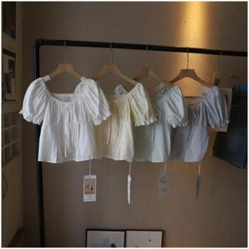 [셀러허브_여성트랜드패션]블라우스 여름 캉캉 크롭 스퀘어넥 러블리 퍼프