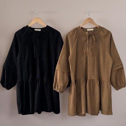 [보니스팍스(여성의류)]소매 퍼프 셔링 러블리 롱 원피스 (XP5OP022M0)