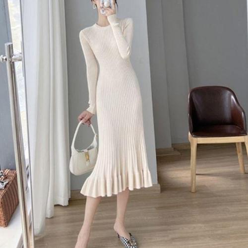 [옷자락] 여자 러블리 여유핏 머메이드 니트 롱 원피스