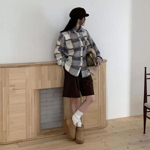 [신상오픈런]여성 체크 패턴 뽀글이 겨울 오버사이즈 포켓 자켓