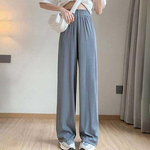 여성용 와이드 레그 팬츠, 주름 아이스 실크 바지, 신축성 허리, 느슨한 캐주얼 바지, 여름 패션
