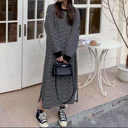 [셀럽하우스]줄무늬 IQXW6268 롱원피스 기모 스트라이프 여성 레깅스코디