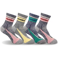 레노마 여성용 스포츠 쿠션 등산 중목 양말 4족 세트 REW-38, 옐로우 + 민트 + 핑크, 1세트