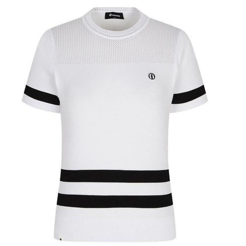 [레노마골프]25SS THE OPEN 여성 라인 라운드 반팔 니트 RWSRO6202-101_CC