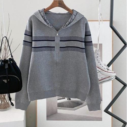 [다잇템]여성 후디 패턴 집업 더블라인 레이온 가디건