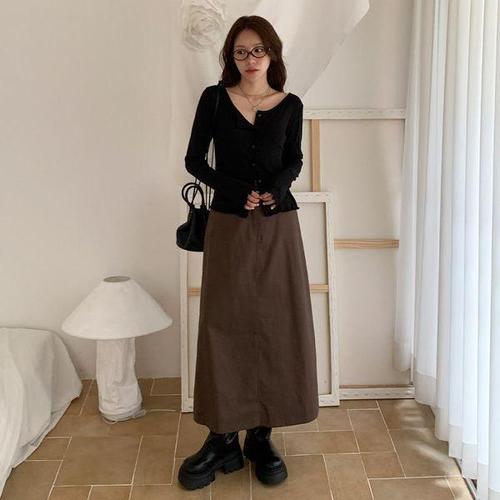 레이온 혼방 브이넥 니트 가디건 [UFI1-KCA157N]