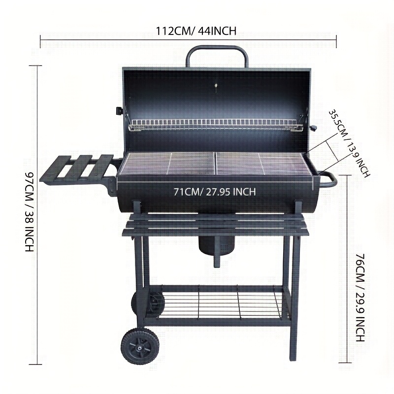 TEMU 대형 미국 스타일 숯불 그릴 - 5~10인용 클래식 디자인의 헤비듀티 철제 구조, 캠핑 및 야외 모임에 완벽한 블랙 바베큐 그릴, 내구성 있고 사용하기 쉬운, 식품 안전, 피크닉 필수품, 튼튼한 구조, 바비큐 애호가를 위한