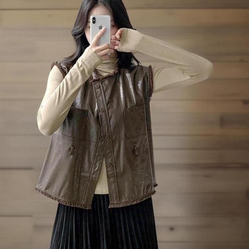 [신상오픈런]여자 가죽재킷 수술 포켓 벨트 버튼 돌돌목폴라 세트 (41440396)