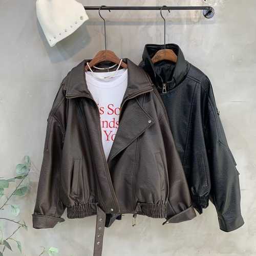 [끌레아]여성재킷 가죽재킷 우아한 라이더자켓 여성 2컬러 가을룩 벨트 레더자켓