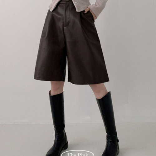 [시크릿라벨] 뒷밴딩핀턱레더숏팬츠