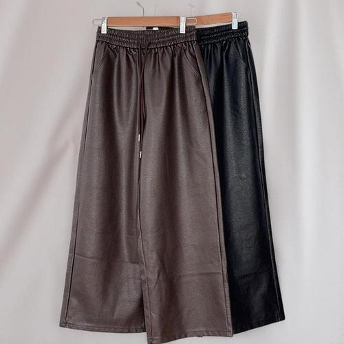 [신상오픈런]여성 통가죽바지 와이드핏 끈조절 레자 가을용 팬츠 (41935745)