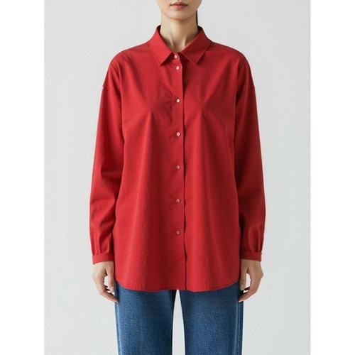 [샵앤]여성 카라넥 베이직 루주핏 무지 긴팔 셔츠 남방 EGG-WBL-20772-레드