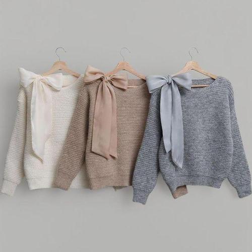 [신상오픈런]여자 가을 겨울 하객룩 리본 스카프 보트넥 부클 니트