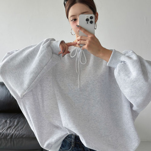 에르디테 / 여성 기모 오프숄더 리본 끈 여리 루즈 오버 핏 맨투맨 티셔츠 3컬러