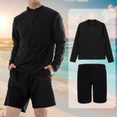 [에어워크]에어워크서프 남성래쉬가드세트 집업+트렁크 YAWe5034_BK+YAWe0902_BK