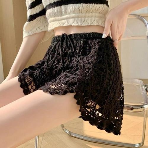 [신상오픈런]여자 레이어드 이너 레이스 펀칭 뜨개 숏 팬츠 (41033347)