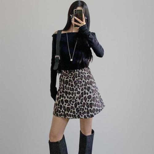 [신상오픈런]여성 레오파드 패턴 앙고라 슬림 A라인 치마 (44010988)
