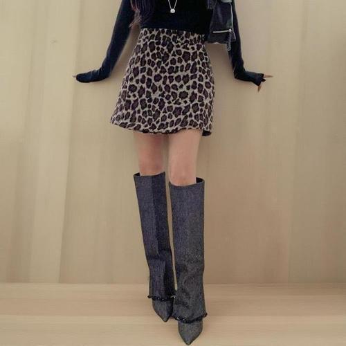 [신상오픈런]여성용 앙고라 레오파드 패턴 A라인 슬림 스커트 (44010985)