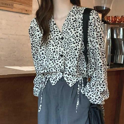 [오너클랜]인기상품 데일리룩 브이넥 레오파드 블라우스 호피 셔츠 루즈핏 [WFJLYBX_251119]