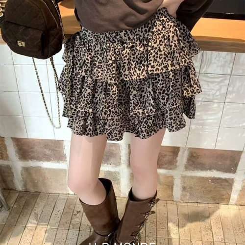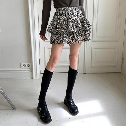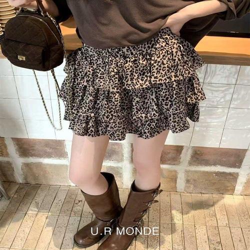 [다잇템]여자 레오파드 티어드 쁘띠 프릴 고무줄 스커트