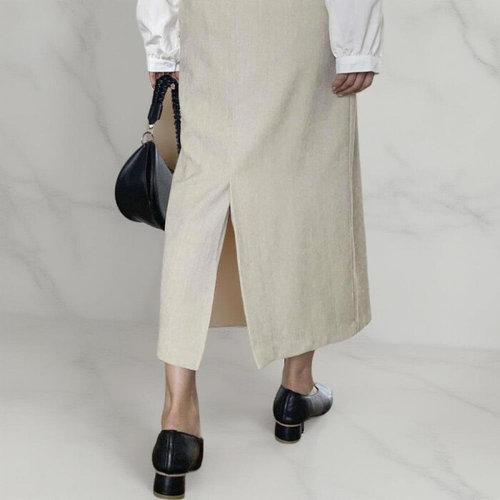 [신상오픈런]여성 리오셀 레온 메탈버클 벨티드 h라인 롱 스커트