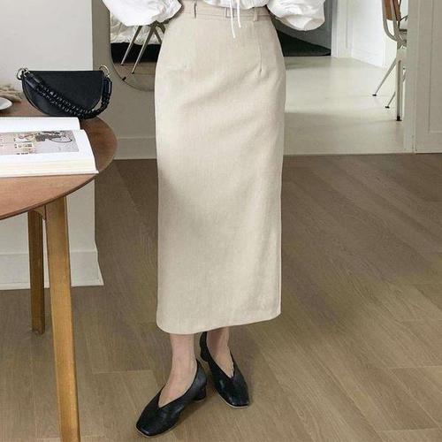 옷자락 / 여성 리오셀 레온 메탈 버클 벨트 H라인 롱 치마