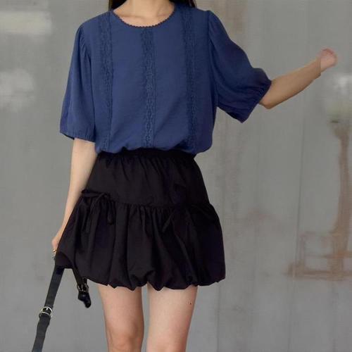 [신상오픈런]여성 레이스 퍼프 대형 라운드 반팔 블라우스 (39096279)
