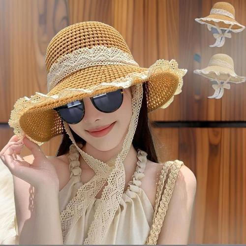 [신상오픈런]여성 레이스 스트랩 모직 베이지 버킷 햇 (32966337)