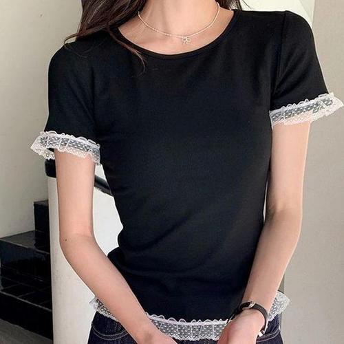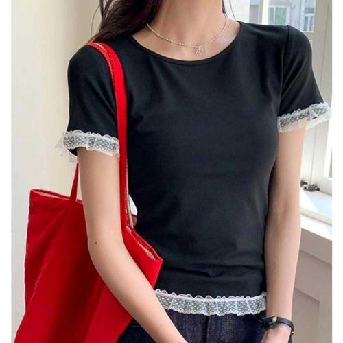 [셀러허브_여성트랜드패션]Rly 여성 데일리 레이스 레이어드 슬림핏 반팔 TDN-0135