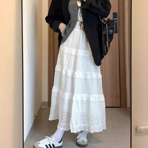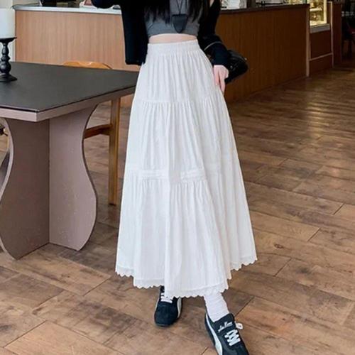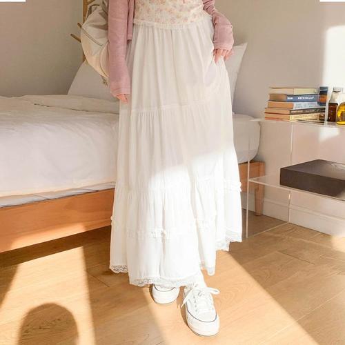 [신상오픈런]여성용 사랑스러운 화이트 레이스 캉캉 롱 스커트 (40953345)