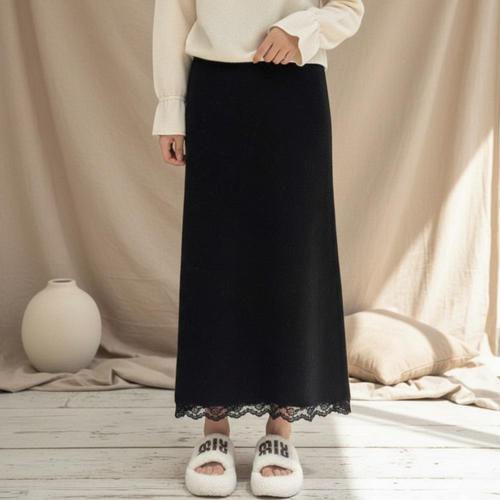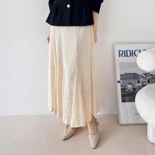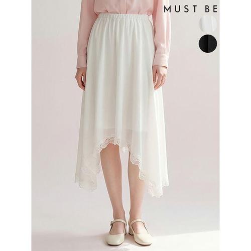 [머스트비]여성 허리밴딩 언발 밑단 레이스 롱스커트