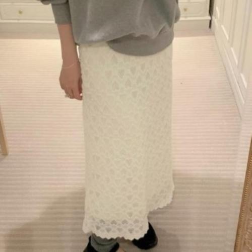 여성 롱 일상용 레이스 하트 신축성 치마