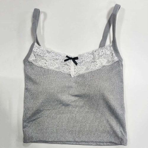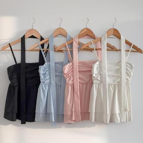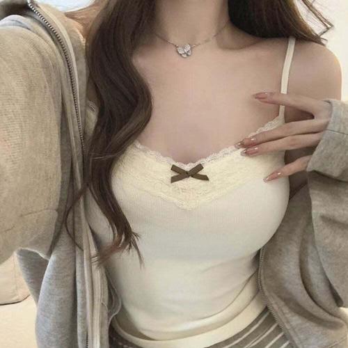 레이스 리본 러블리 슬리핏 끈나시 나시티