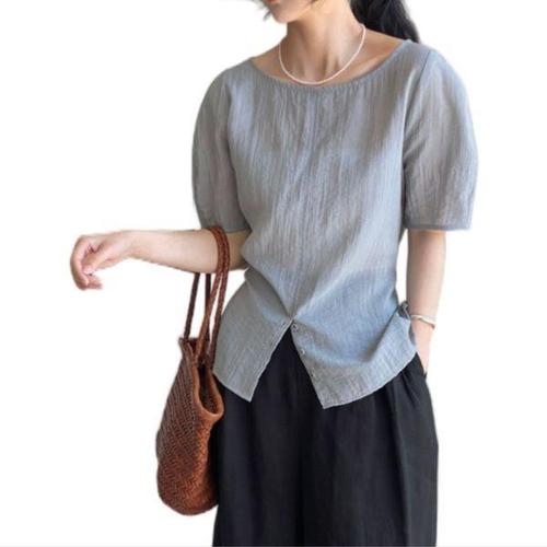 해피유통 여성 봄여름 순면 V네크라인 반팔 레이스 장식 루즈핏 상의M07