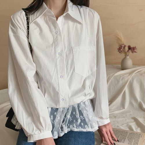 [다잇템] 여자 레이스 카라 박시핏 마원단 면혼방 롱슬리브 셔츠_24739595_588872
