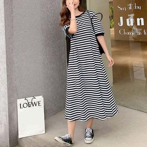 [모노무드]모노무드 은플레이스 편안한 무지 여름 원피스 캐주얼 가로줄 라운드 반팔