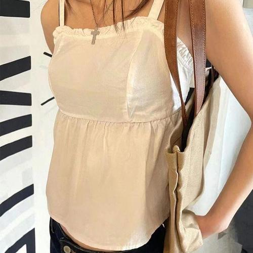 [셀러허브_여성트랜드패션]ONM 여성 티셔츠 프릴 레이스끈나시 캡나시