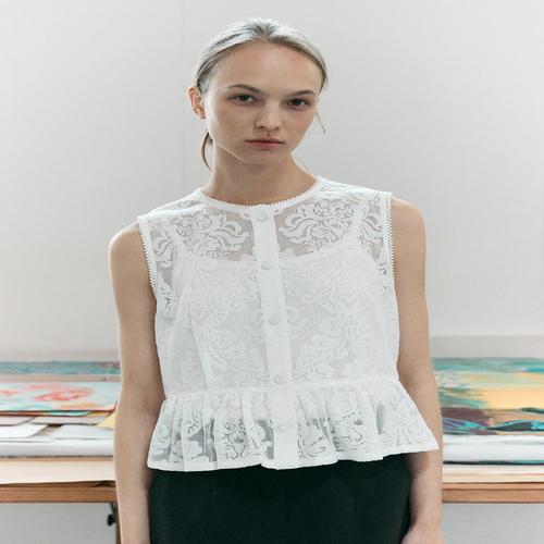 민소매 레이스 자수 레이어드 블라우스 WFLS27M