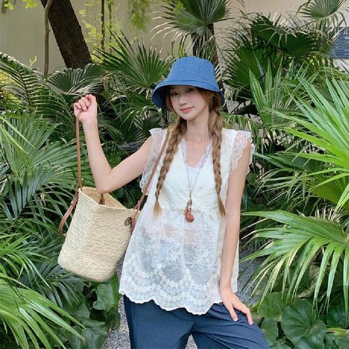 [오더먼트 바이 보카바카]Lace Sleeveless Full-open Blouse VC2573BL306M