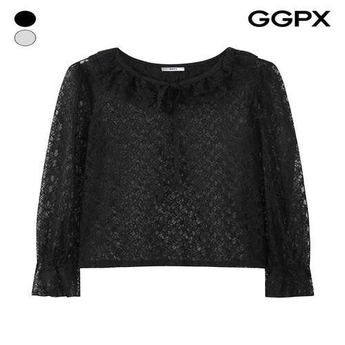 [GGPX]시스루 레이스 프릴 블라우스 (GQ1SH026F)