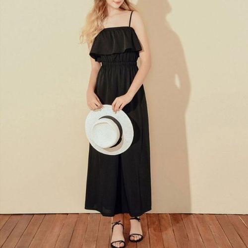 여성 잔주름 끈탑 귀여운 프릴 점프수트