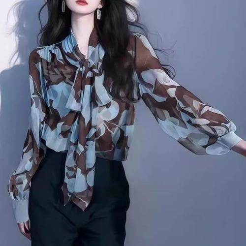 여성 블라우스 셔츠 이중 빅카라 레이스 쉬폰 블라우스