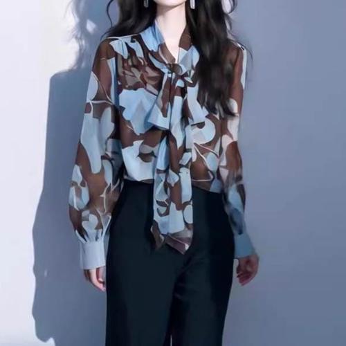 이중 빅카라 레이스 쉬폰 블라우스 USD-387