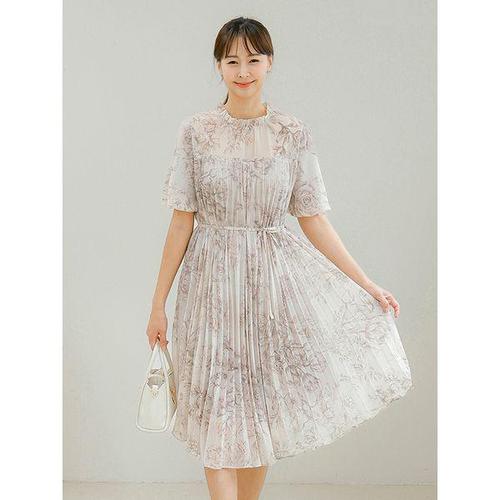 [드리다]여성 여름 플라워 플리츠 A라인 빅사이즈 쉬폰 반팔 원피스 40-50대 미시 중년 하객 모임 오피스..