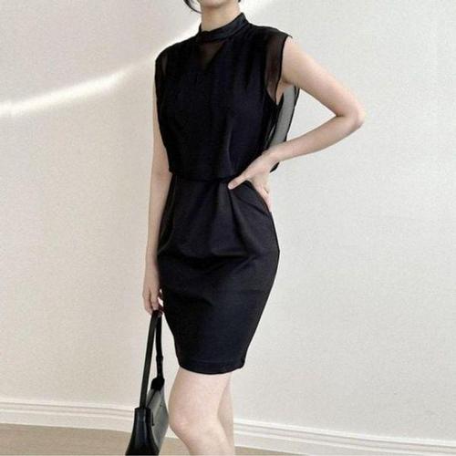 [에이치플러스몰]여성 블랙 추천 원피스 프릴 꾸안꾸 라인 슬림핏 하객