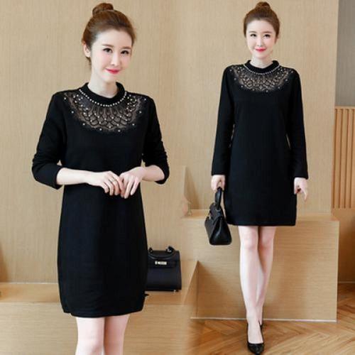 F60723 넥 진주 레이스 니트 원피스 롱티 하객룩 모임 WFL8DLC